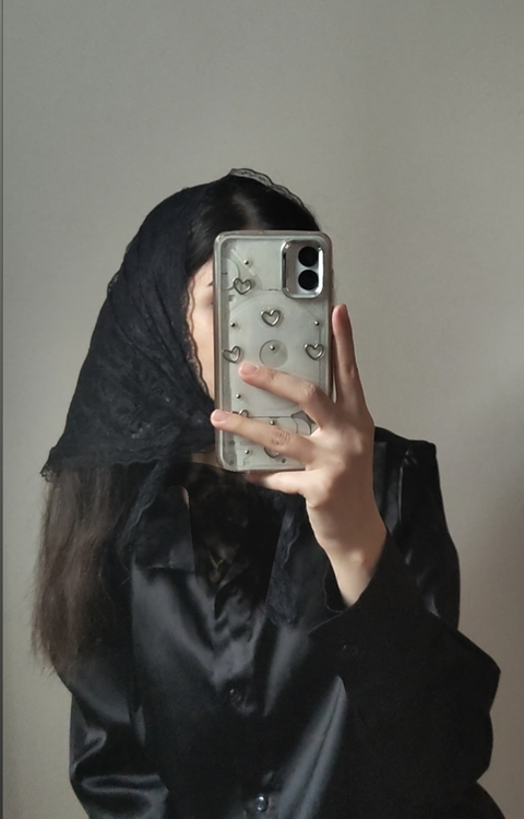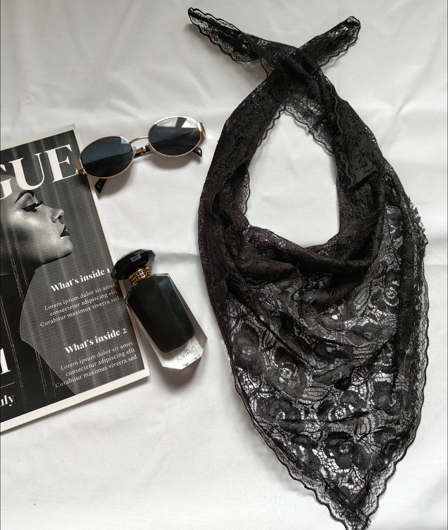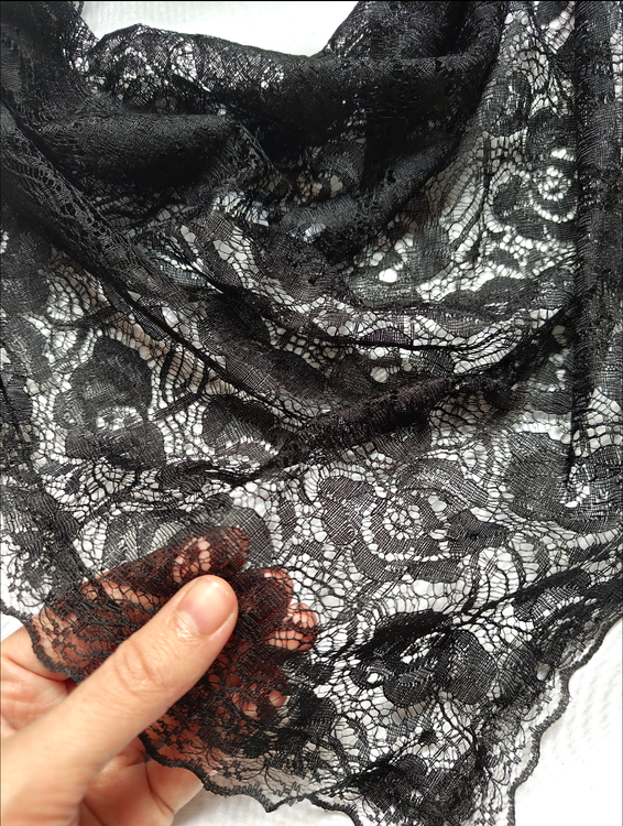روسری سه گوش گیپور مشکی دور دانتل
