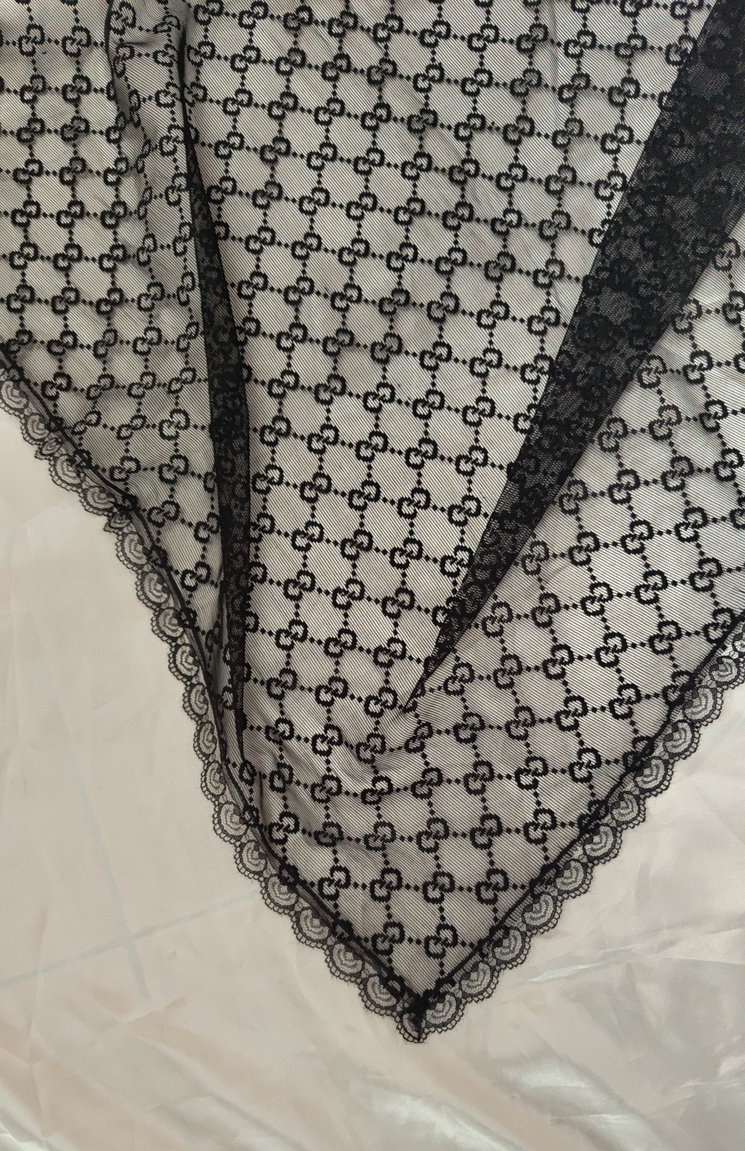 روسری توری حاشیه گیپور مشکی